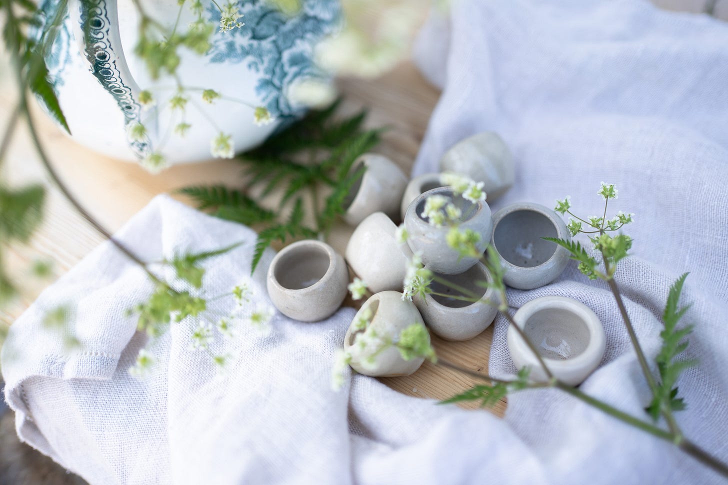 You might have seen me mention these before but they are very cute little stoneware pots used to serve escargot (snails) in a garlic butter. I love them (the pots that is- the jury is out on the snails themselves) and think they make great little pots for earrings, individual butter portions or salt and pepper pots.